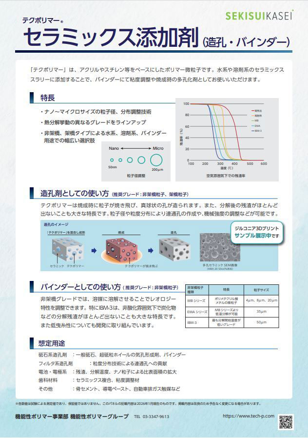 「テクポリマー」は、アクリルやスチレンなどをベースとしたポリマー微粒子です。