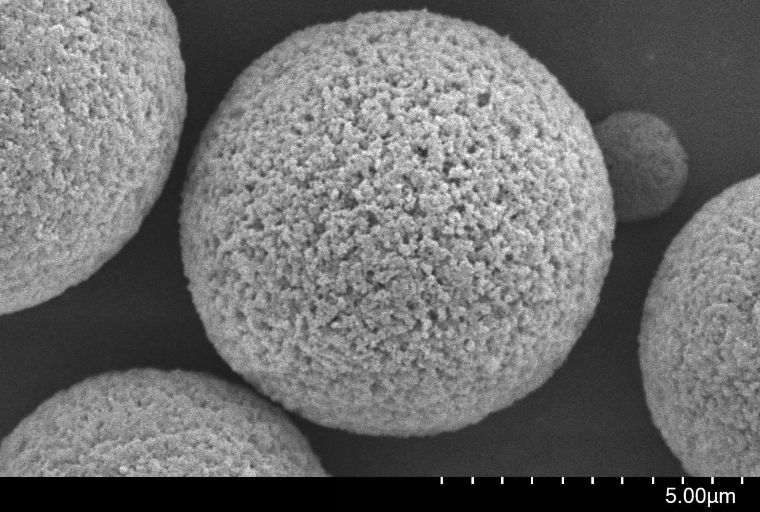 当社製品MBP-8と⽐較し、2倍近い⽐表⾯積を持った多孔質状のポリマー微粒子です。